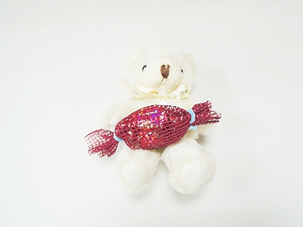 這次小編為大家分享怡樂購其中一款紗袋小熊的製作~~ 1﹒首先當然先準備材料啦!!紗袋×1、主角小熊熊×1、超好吃的水果糖×3、裝糖果的紗袋×1、小鐵絲×2 2﹒先把糖果包好 3﹒包好的糖果放在小熊的手中彷彿就像是小熊送來的祝福~!