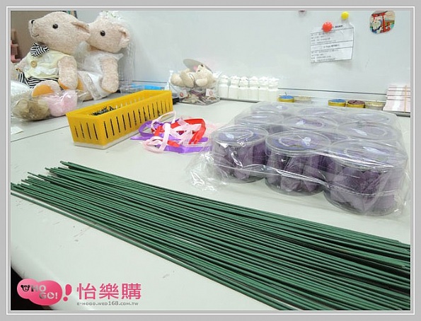 第一步準備材料先~人造花梗、花托、精皂花,當然還有捲花材料,只是小編忘記一起拍進來了 ˊ _>ˋ