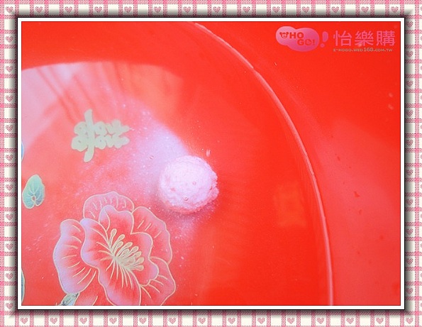 由於小編真的找不到浴缸來泡澡給大家看,所以只好找一個看起來超喜氣的小盆子來試用一下~