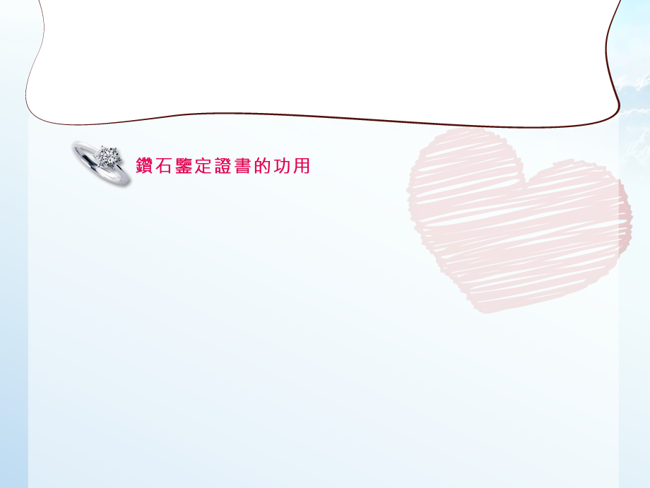 | 鑽石證書,即鑽石分級證書(diamond grading report)、鑽石品質保證書(diamond quality report),是對鑽石以4C標準為基礎,是由珠寶專家們在特定的環境下依據嚴格的分級標準仔細觀察和檢測鑽石從而形成的一份報告。目前國際範圍內普遍 認可的是國際寶石學院(IGI) 和美國寶石學院(GIA)頒發的證書。 鑽石鑒定證書的真正意義是鑽石品質分級報告書,報告書的主要目的在於: