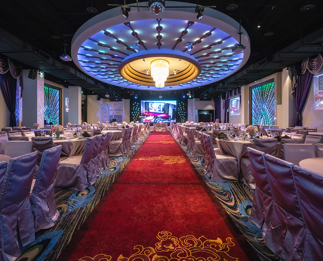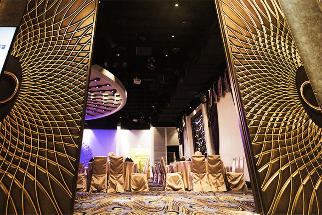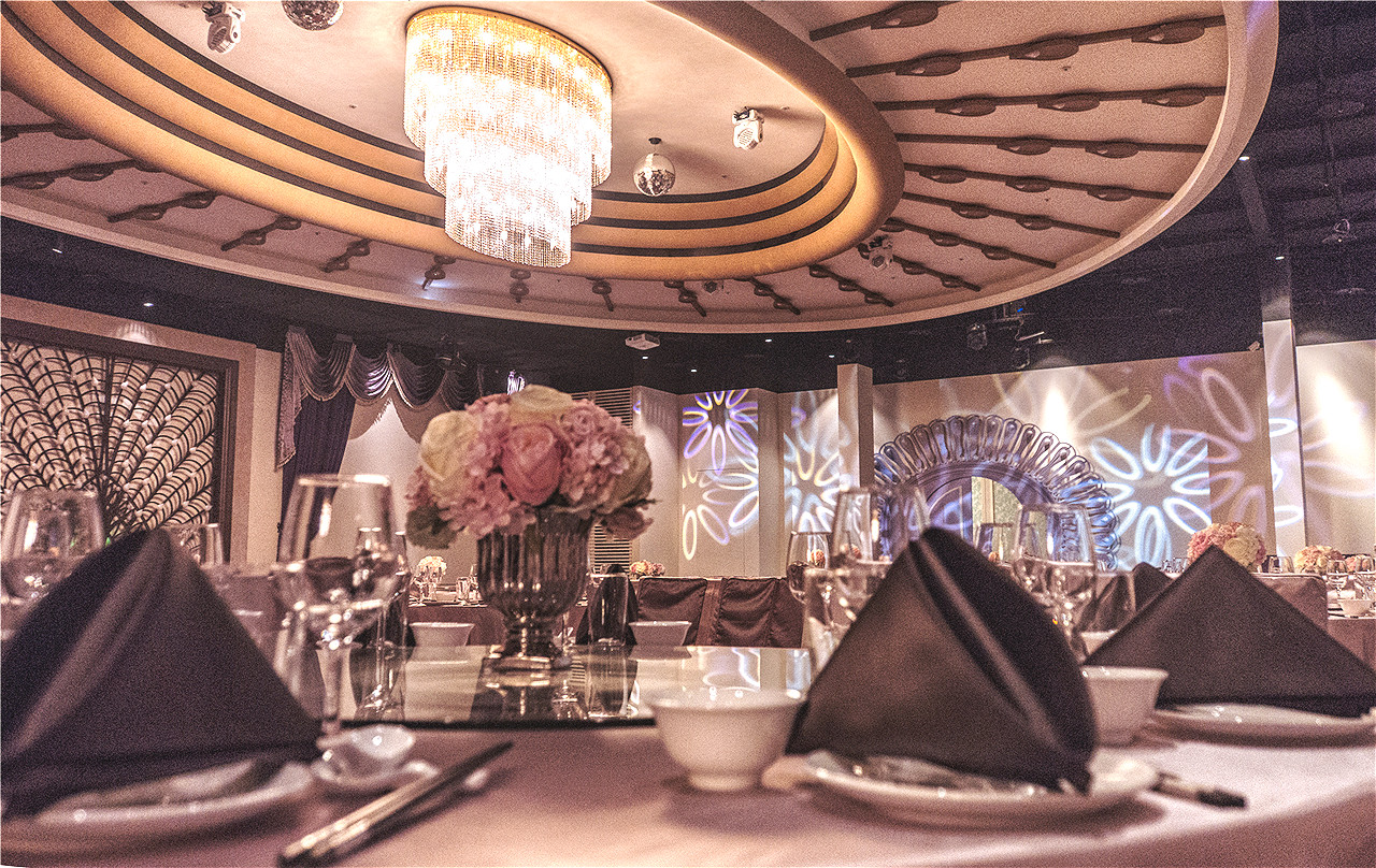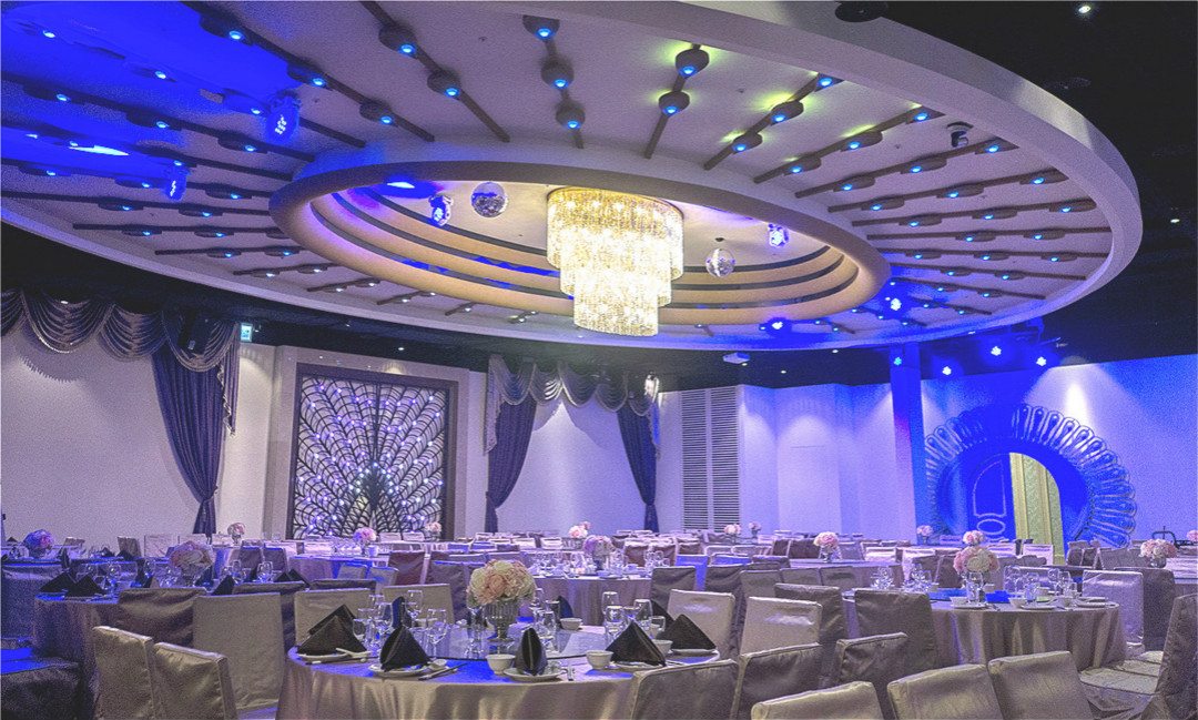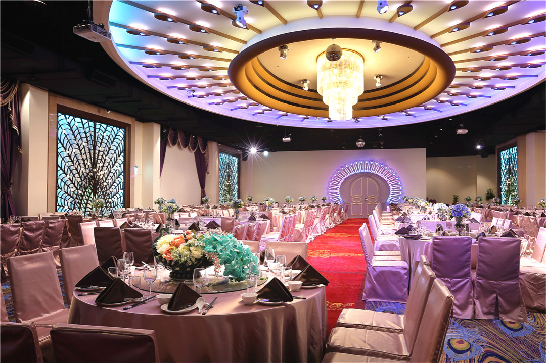 五大宴會廳主題採用象徵尊寵華麗的孔雀與充滿浪漫愛情的櫻花造型,結合主題藝術光雕,營造千變萬化的夢幻情境,獨立的VIP新娘房包廂,兼具隱私與方便!